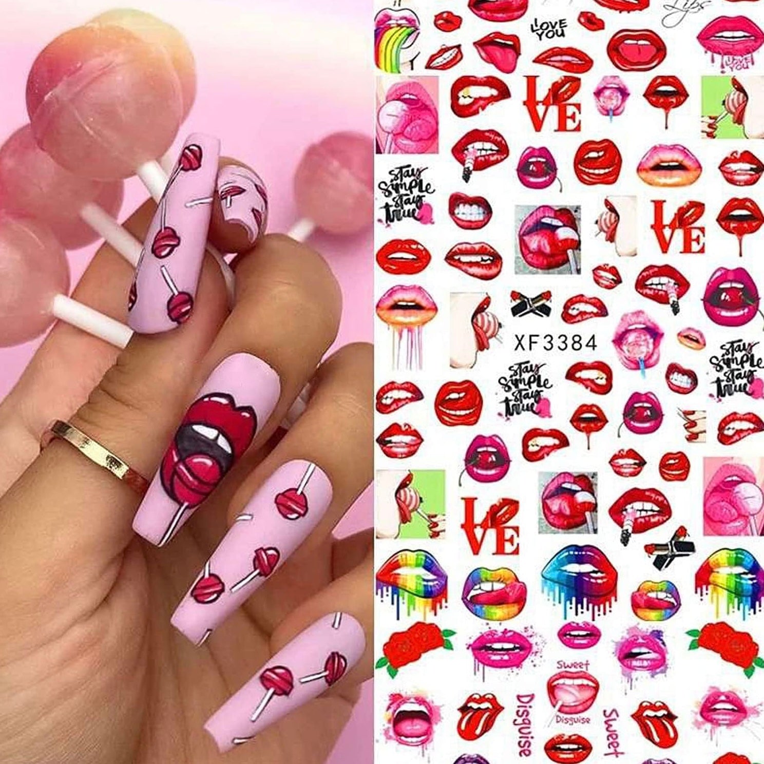 Bad Girl Nail Art Stickers Decals Nail Art Supplies Valentines Day 3D Self-Adhesive Nail Decorations Accessories Fashion Manicure Designs Sexy Lips Cool Girl Self Adhesive(Z-D5285)