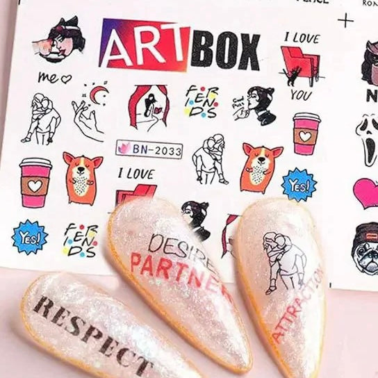 Love Heart Kiss Lips Bear Cupid Nail Decals (B-027)