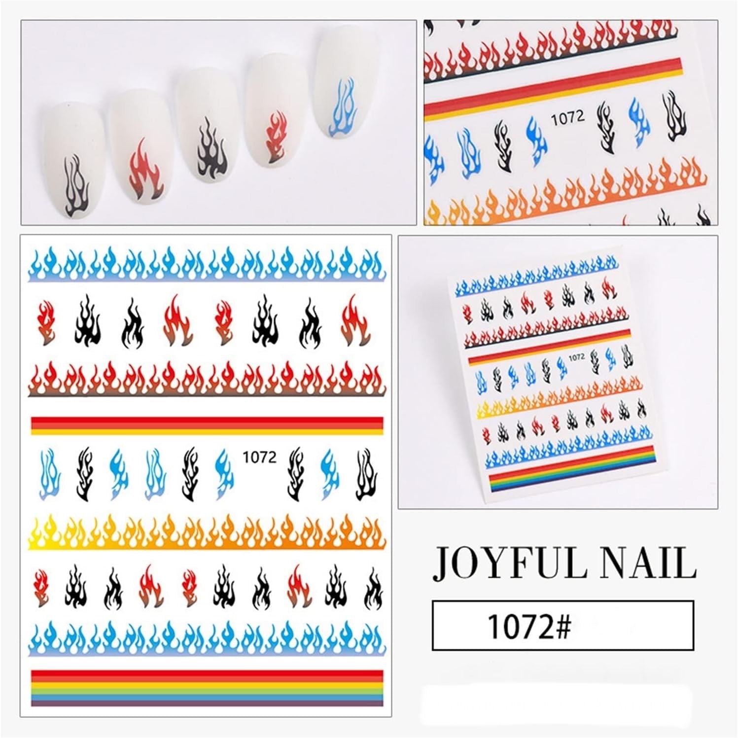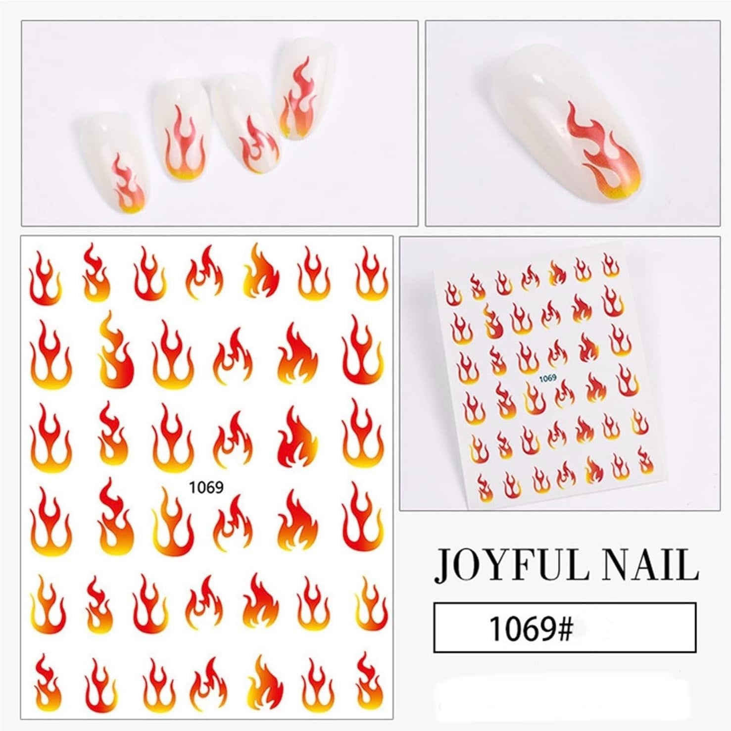 Nail Sticker Flame Fire Torch Light 12 Style 3D Engraved Nail Stickers Art Decorations Nail Decals Vintage Elegant Summer Nail Sticker(1072)