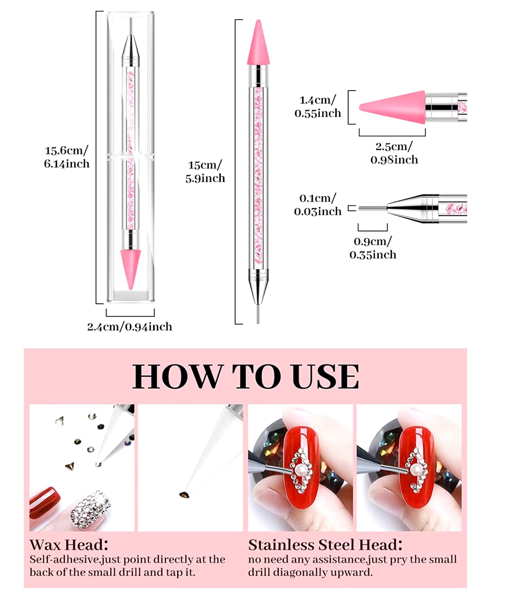 Nail Rhinestone Picker Dotting Pen, Wax Pencil for Rhinestones, Dual-ended Rhinestone Gems Crystals Studs Picker Wax Pen