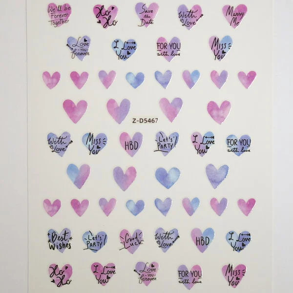 Nail Sticker of Hearts & Lovely Words Purple and Blue (Z-D5467)