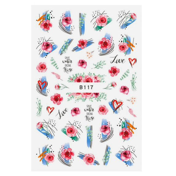 Nails Flower Stickers Decals Colorful Blossoms(B-117)