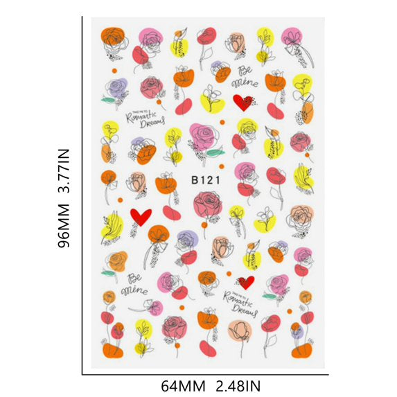 Nails Flower Stickers Decals Colorful Blossoms (B-121)