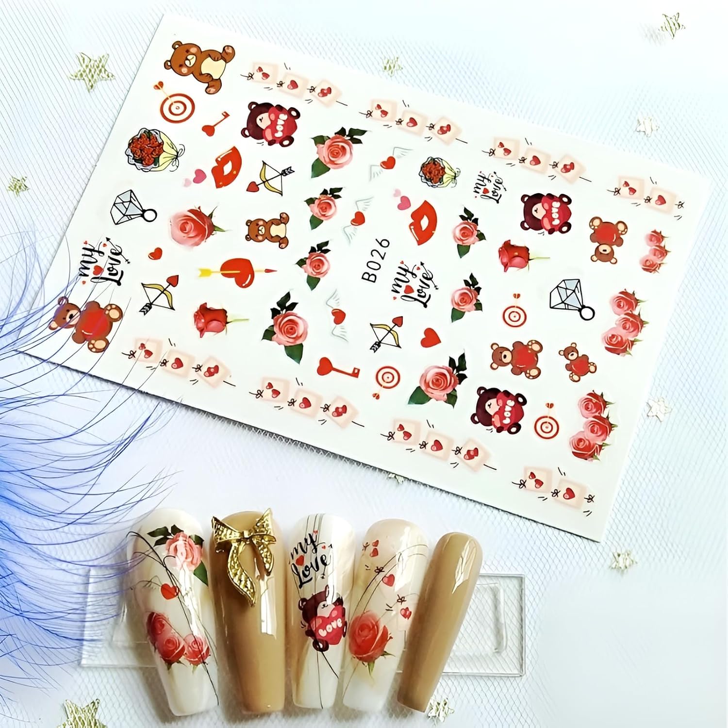 Nails Flower Stickers Decals Blue & Purple Roses and Hearts(B-113)