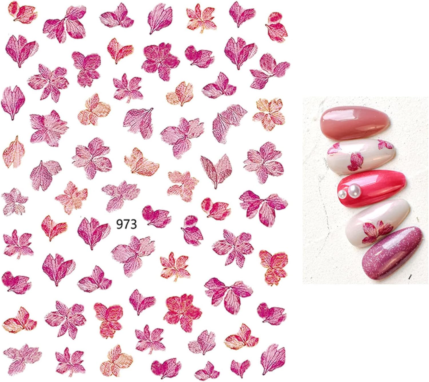 Nail Stickers Nail Art Decals Charming Botanical Florals Roses Flowers Butterflys Back Glue Nail Stickers-(Jo-973)