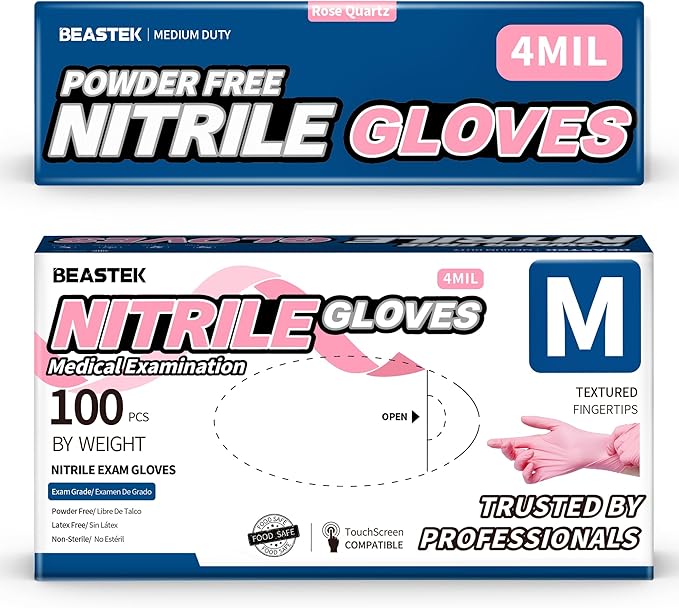 Nitrile Exam Gloves, 4Mil Disposable Powder-Free Latex-Free Glove for Medical Cooking Clean Esthetician, 100 Pcs (Medium)
