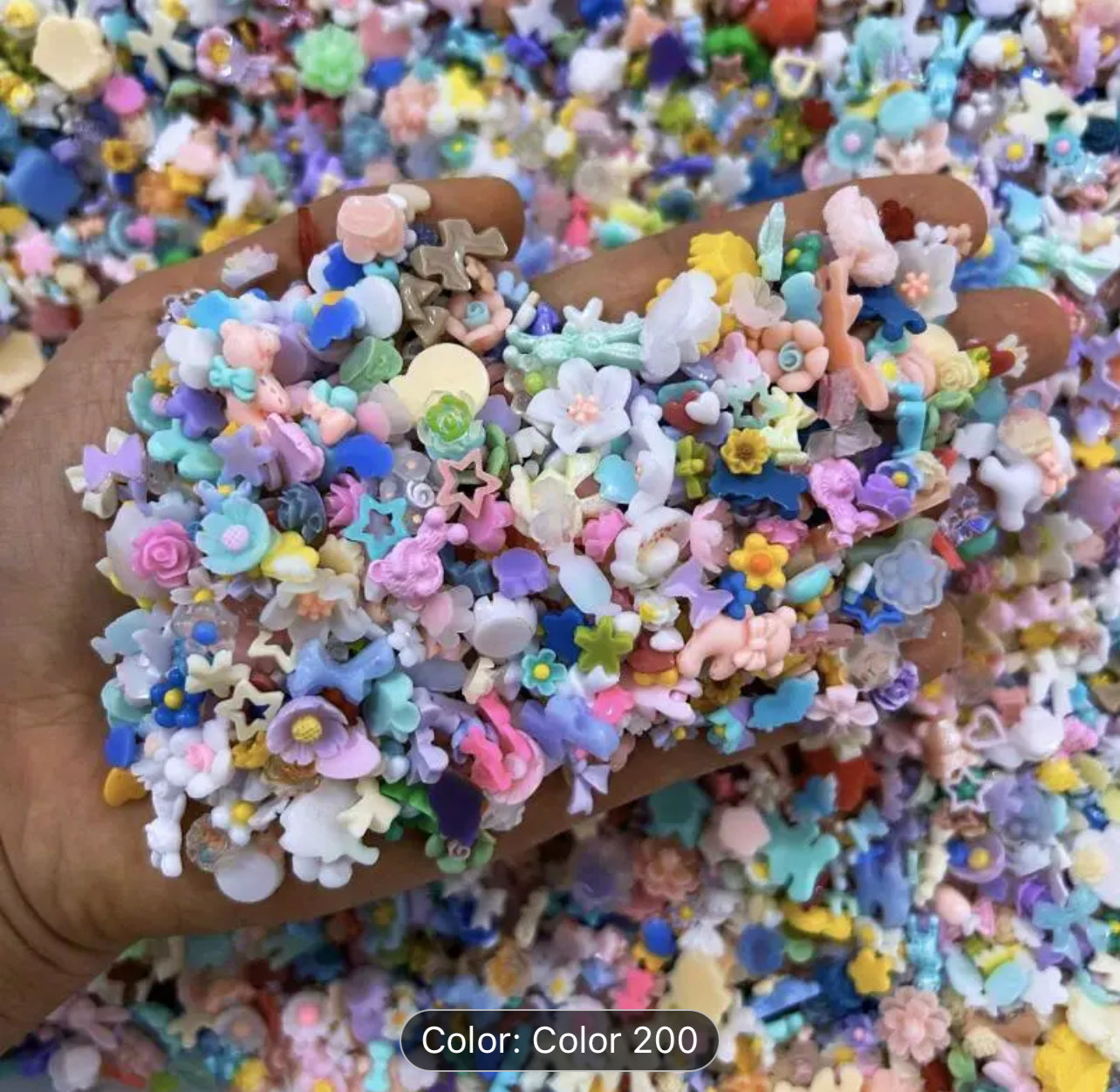 200pcs Luminous Rabbit Bowknot Nail Charms - Studs for Nail Art Decoration and Music Festival - Colorful Flower Design Accessories for Women and Girls