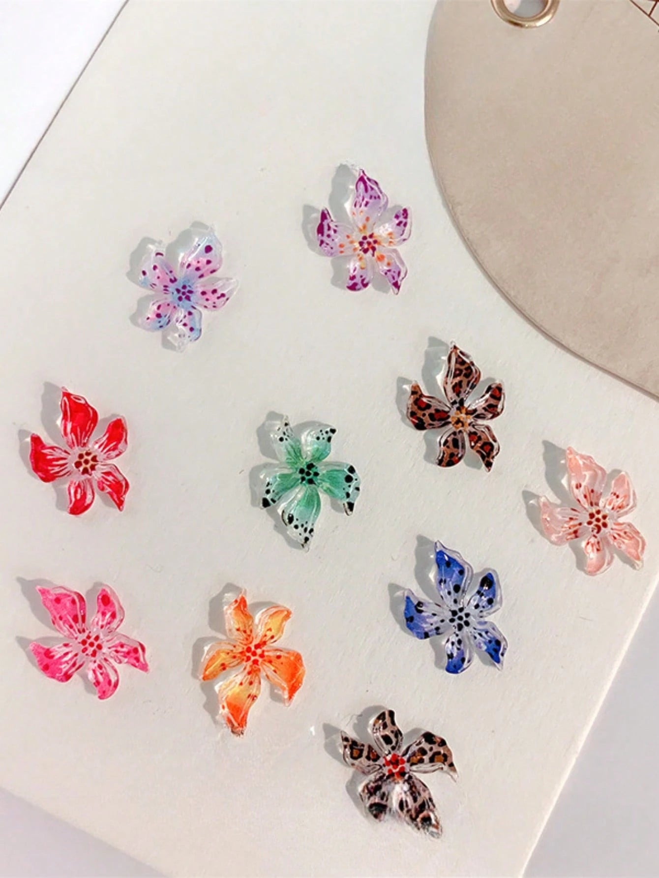 20PCS 3D Soft Carved Ice Crystal Resin Lily Flower Nail Charms,Odorless, Unscented Nail Art Decorations For DIY Crafts And Nail Salon Supplies