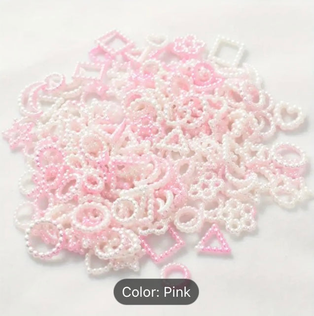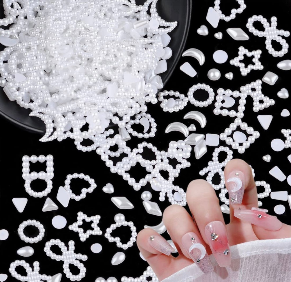 500Pcs White Half Pearls Heart Nail Beads Mixed Styles 3D Flatback Hollow Pearls Heart Star Moon Multi Shapes Rectangle Nail Charms (Muiti Shapes)