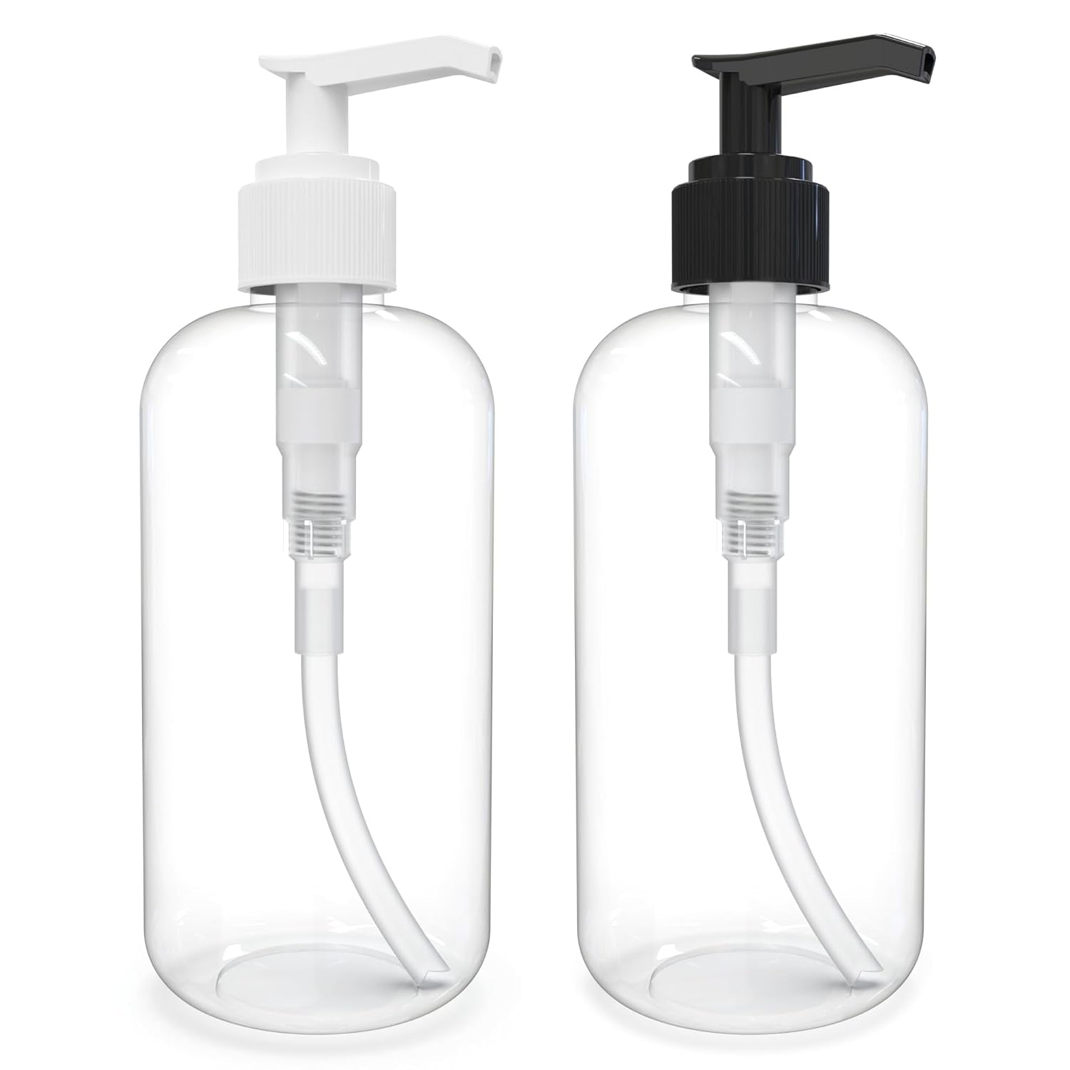 Empty Lotion Bottles with Black and White Pumps, 8oz Plastic Clear Round Bottles Containers for Creams, Hand Soap, Body Wash