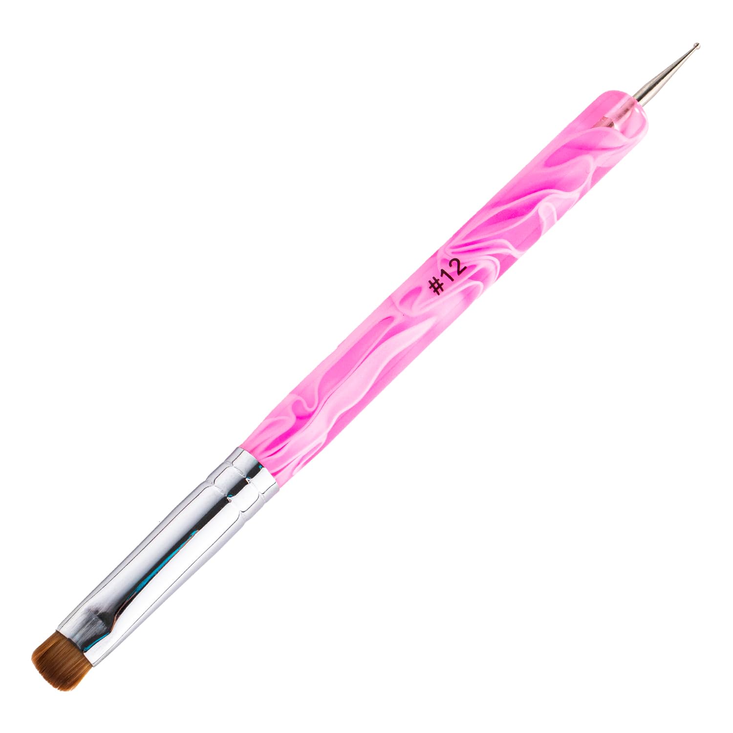 French Manicure Brush - 2 Way Nail Art Brush with Dotting Tool for Cuticle Clean Up & Design - Professional Salon Quality, Nail Dotting Pen