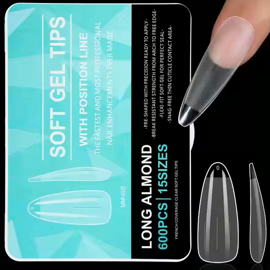 Long Almond Full Half Cover Clear Acrylic False Nails Square Pattern ABS Material Soft Gel Tips for Fingers 600pcs