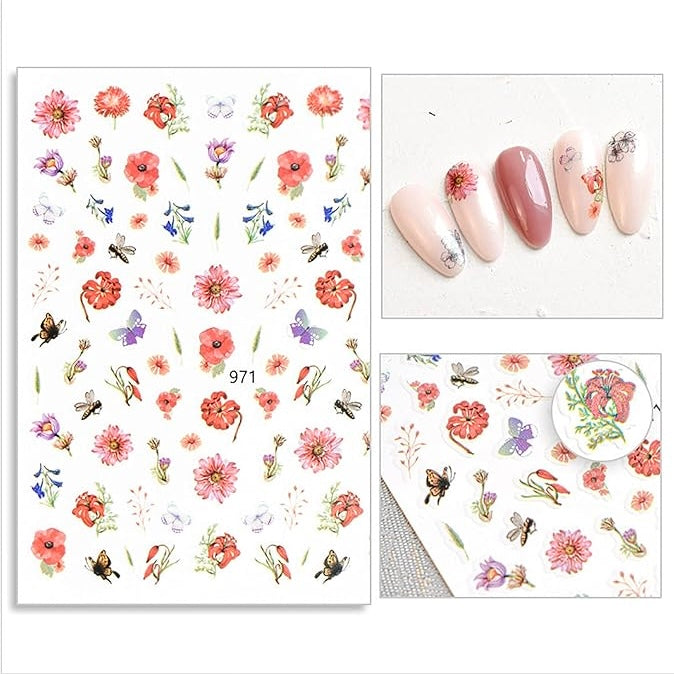 Nail Stickers 3D Nail Stickers Flower for Nails Foil Manicure Nail Art Decorations (1066)