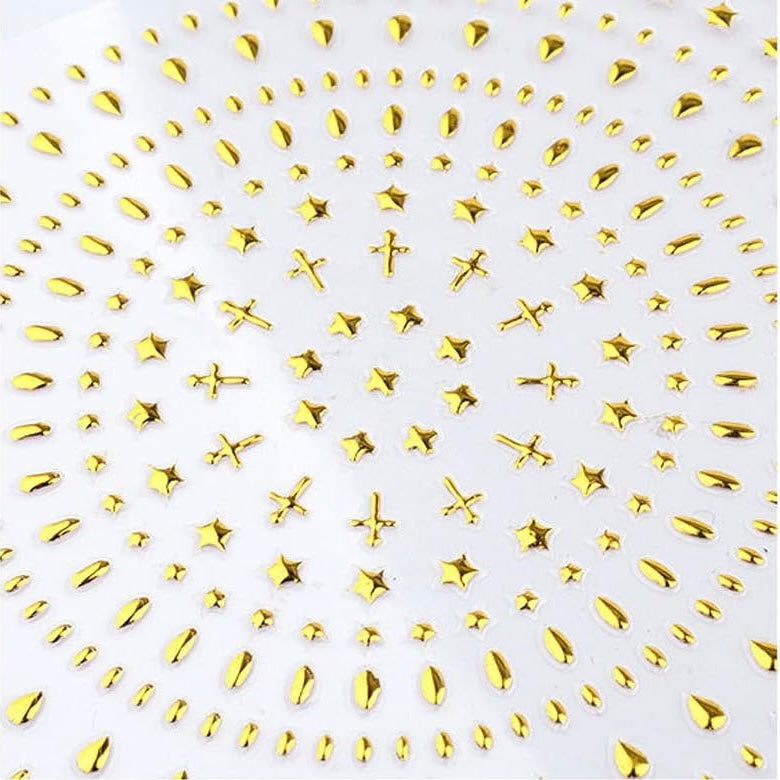10 Sheets Self-ahesive 3D Design Nail Art Stickers Decals Metallic Studs Rhinestones Moon Star Geometry Cross Pattern Gold Manicure DIY Decoration Tools(DP-331)