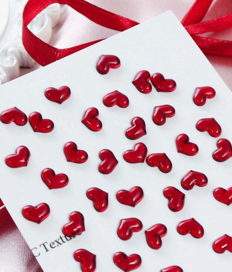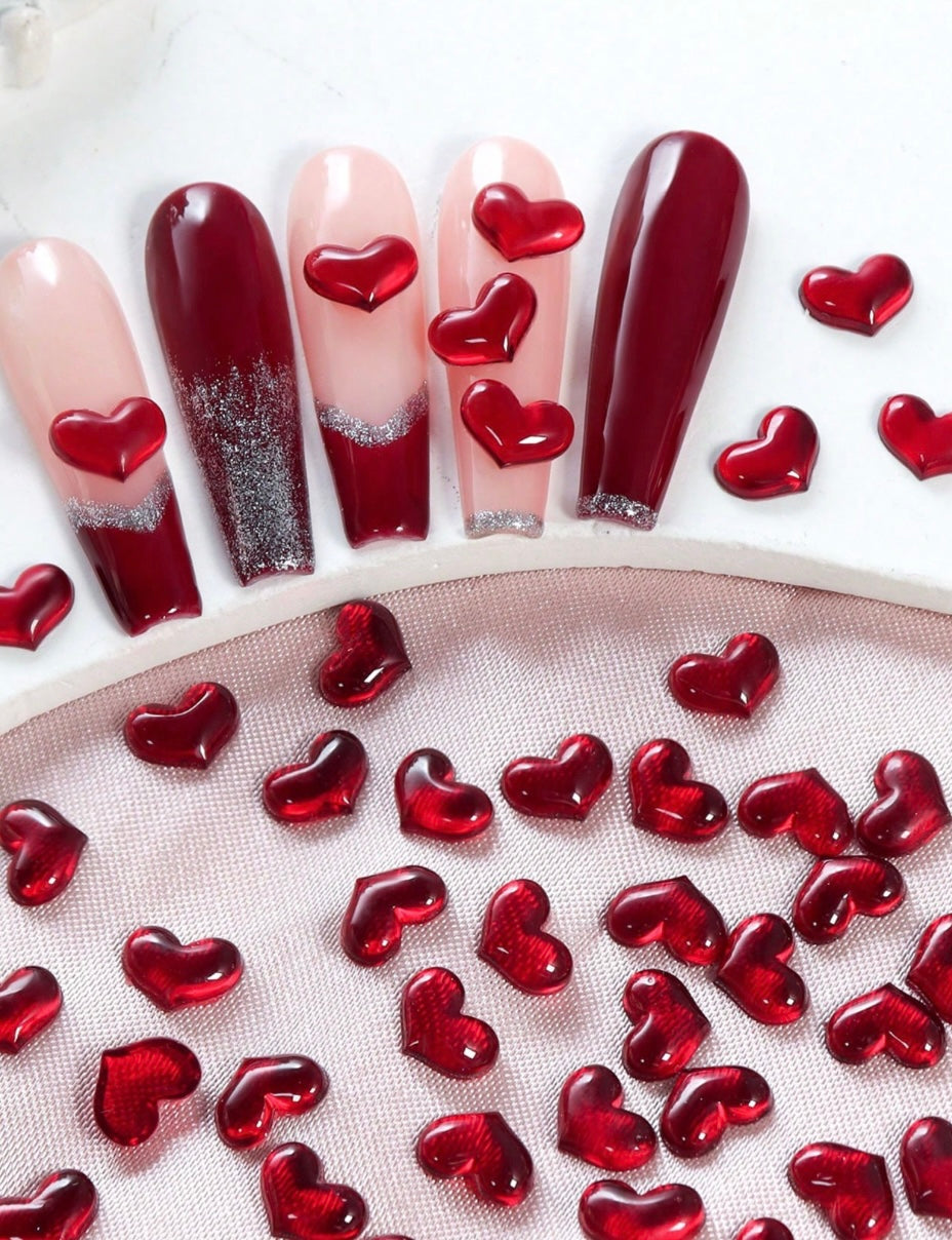 30pcs Mini Heart Nail Charms Cute Sweetheart Burgundy Nail Parts For DIY Valentine's Day Design Nails