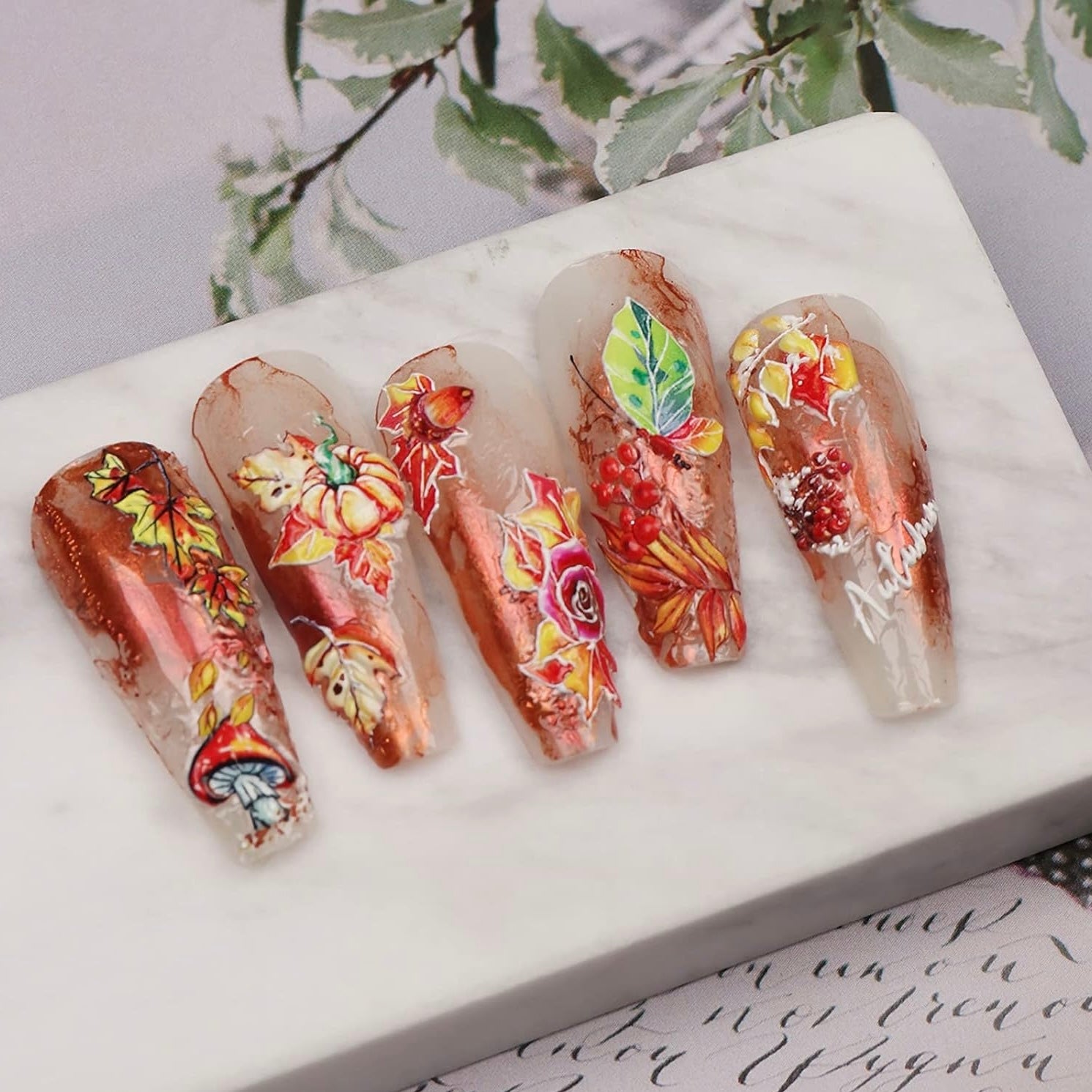 5D Fall Nail Stickers, Maple Leaves Nail Decals Embossed Autumn Nail Art Supplies Pumpkin Butterfly Rose Maple Leaf Nail Design Self Adhesive Nail Accessories Thanksgiving Day Nail Decoration (5D-K179)