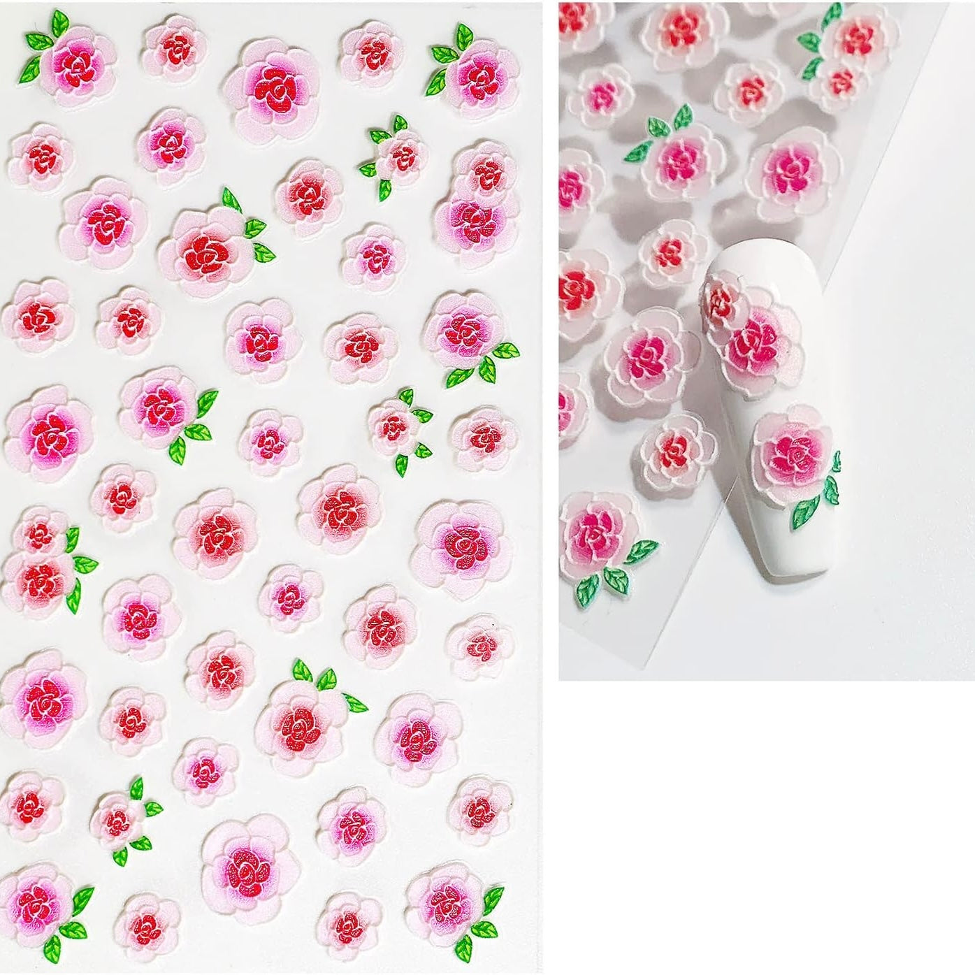 5D Nail Stickers Flowers for Acrylic Nails Flower Nail Art Stickers Blossom Pink 5D Flowers Nail Decals Flower Stickers for Nails Design Stickers for Gel Nails Decorations(Z-D4958)