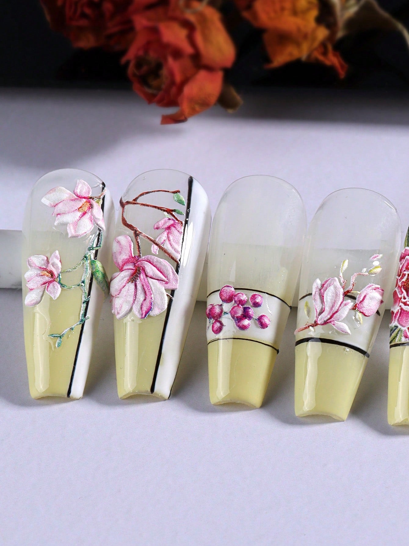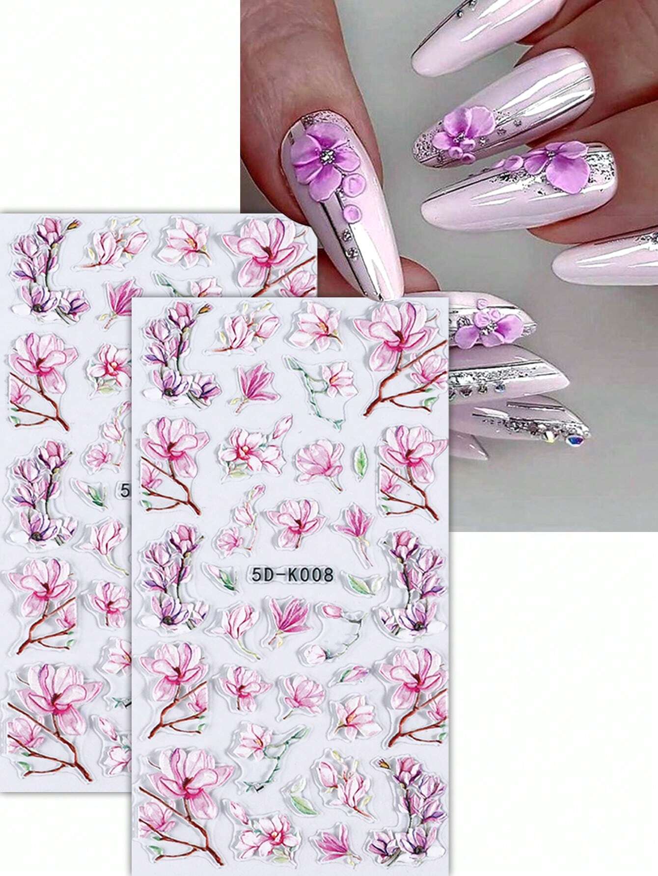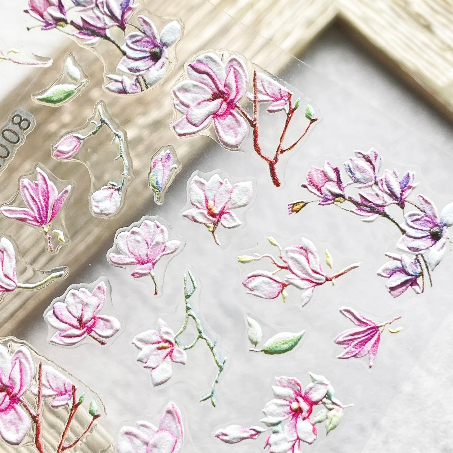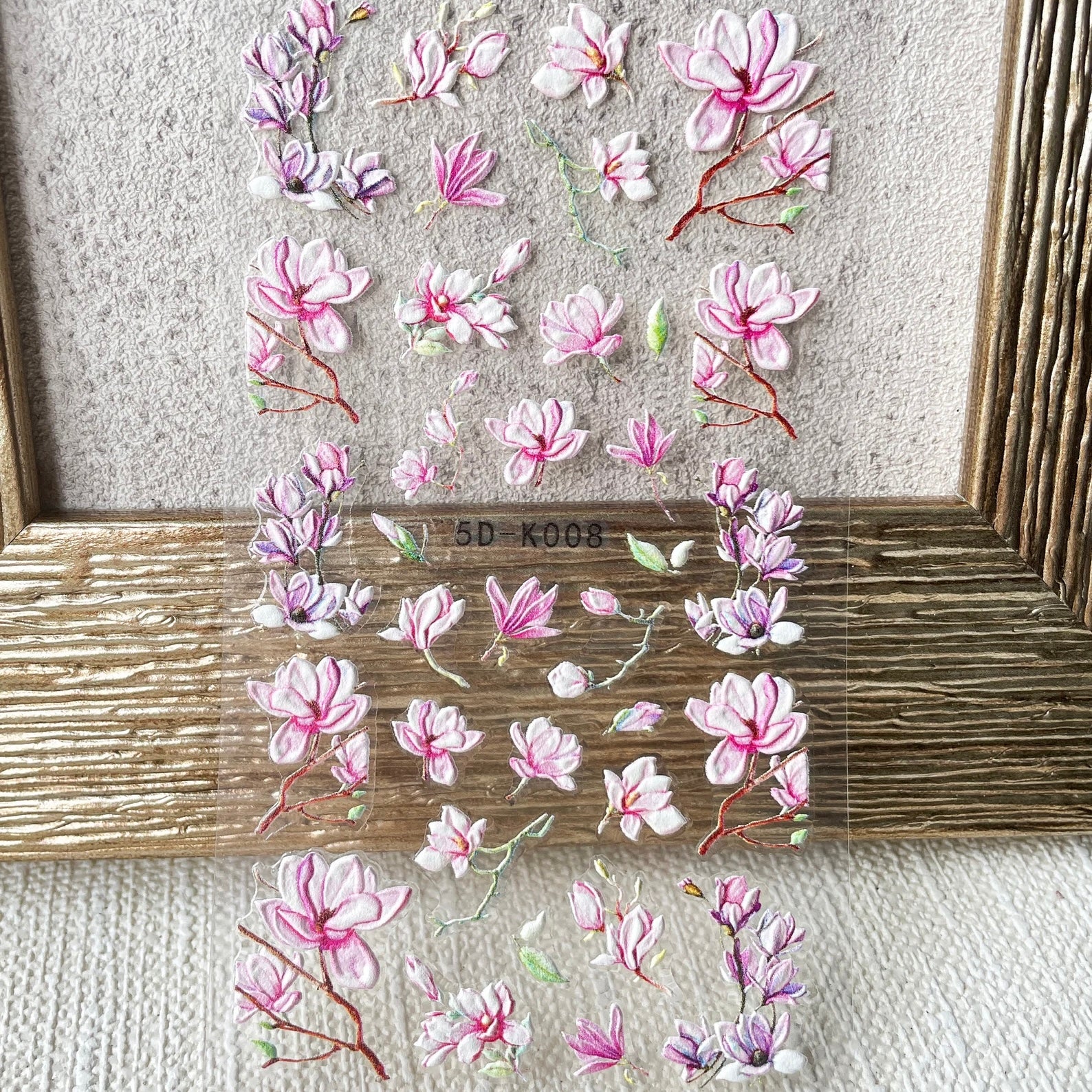 5D Pink Floral Stickers, Magnolia Flower Nail Decals, Self Adhesive Nail Art Design, DIY Nails, Hologram Nails (5D-K008)