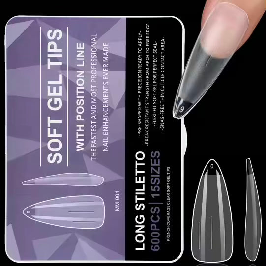 Long Steiltto Full Half Cover Clear Acrylic False Nails Square Pattern ABS Material Soft Gel Tips for Fingers 600pcs