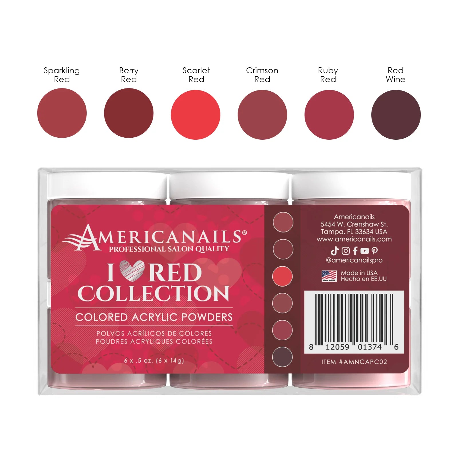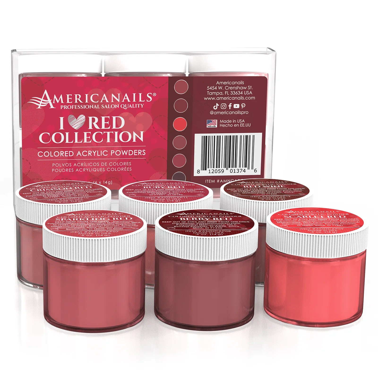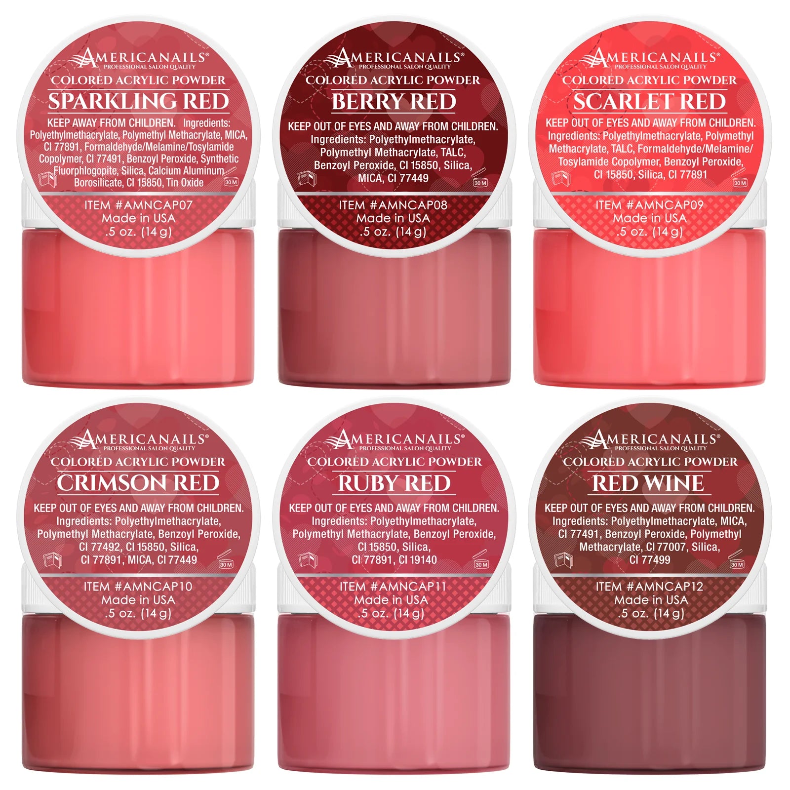 Americanails Colored Acrylic Powders | I ♥️ Red Collection Kit