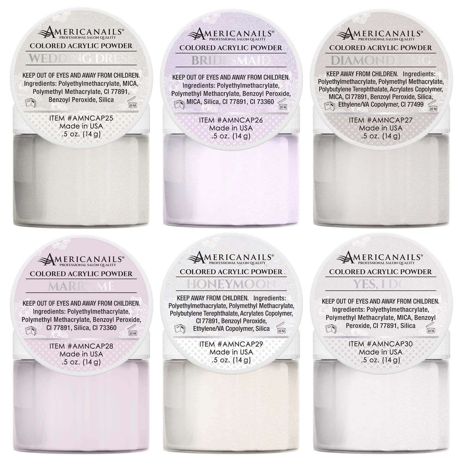 Americanails Colored Acrylic Powders | Wedding Collection Kit