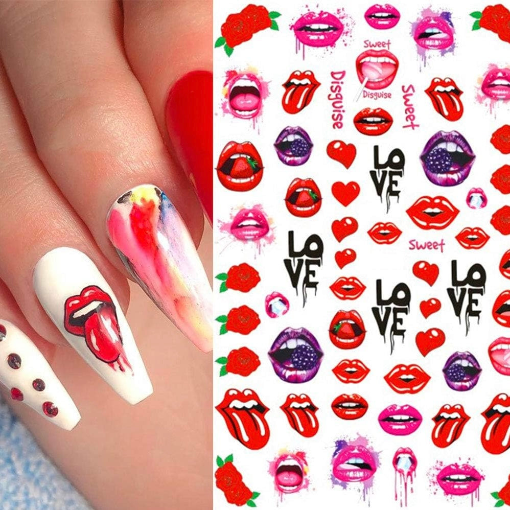 Bad Girl Nail Art Stickers Decals Nail Art Supplies Valentines Day 3D Self-Adhesive Nail Decorations Accessories Fashion Manicure Designs Sexy Lips Cool Girl Self Adhesive(Z-D5283)