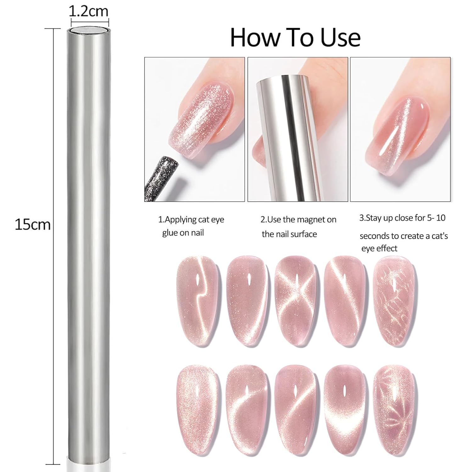 Extra Large Cylindrical Cat Eye Magnet for Nails Double-Head Magnetic Gel Polish Stick Multi-Function Nail Magnet Strong Magic Cat Eye Manicure Design Tool