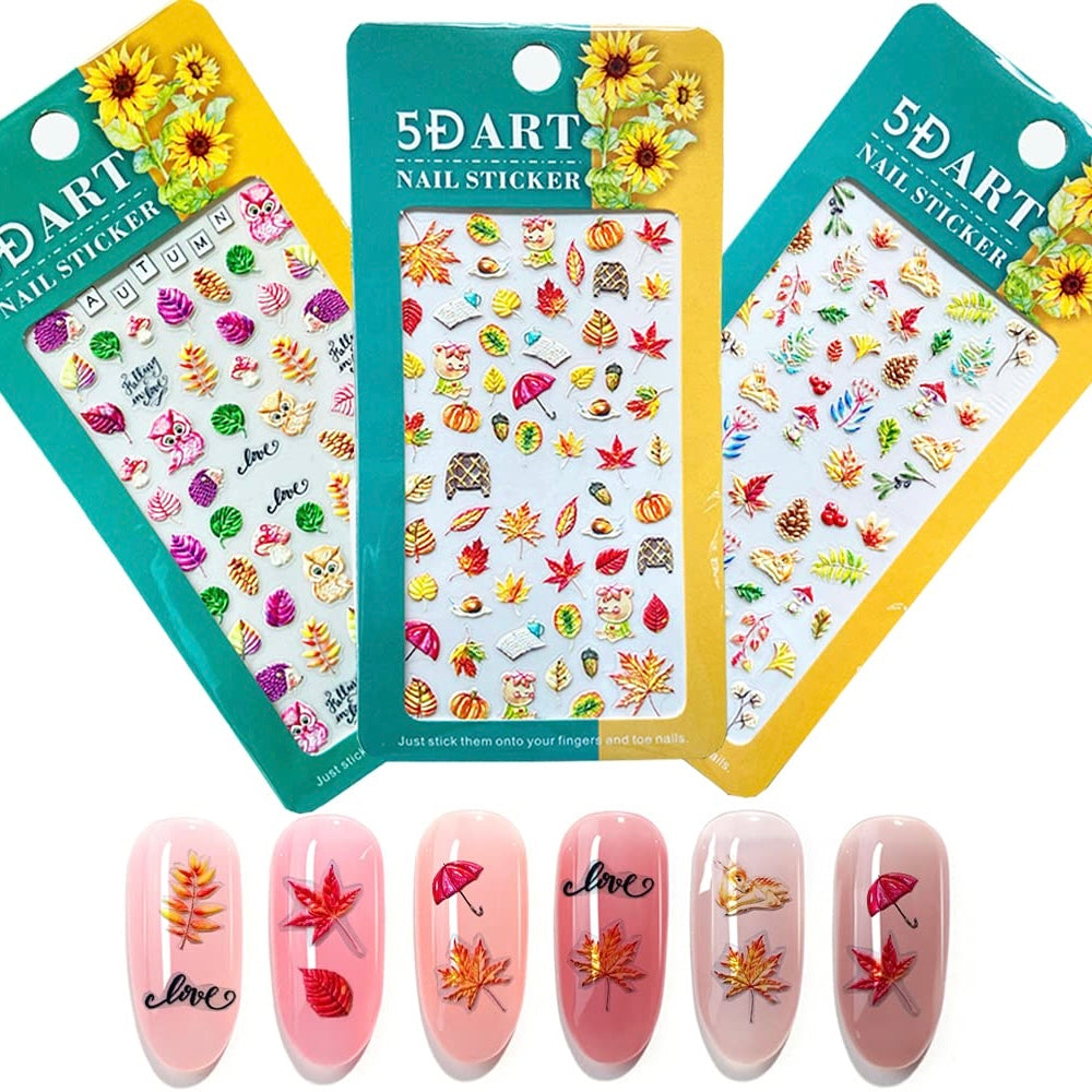 Fall Maple Nail Art Stickers Decals Autumn Nail Supplies 5D Stereoscopic Embossed Yellow Leaves Flowers Fruit Harvest Season Nail Design Self-Adhesive Charms Nail Decoration for Acrylic Nail(5D-K092)