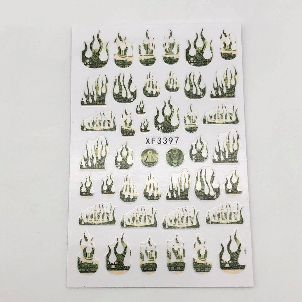 Flaming Dollar (XF3397) - Nail Art Sticker
