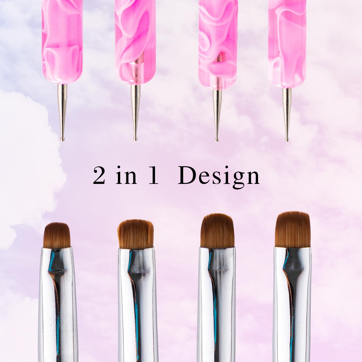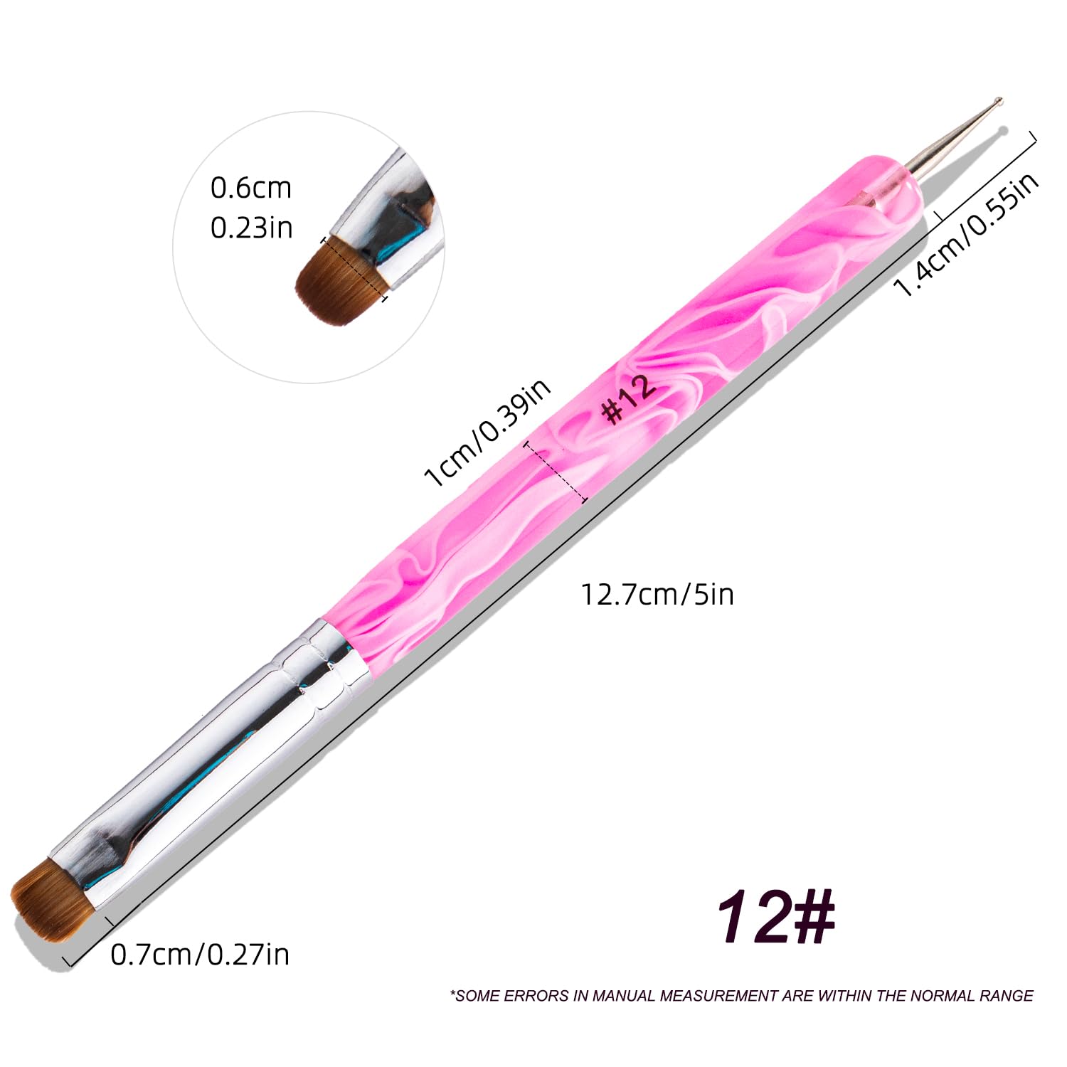 French Manicure Brush - 2 Way Nail Art Brush with Dotting Tool for Cuticle Clean Up & Design - Professional Salon Quality, Nail Dotting Pen