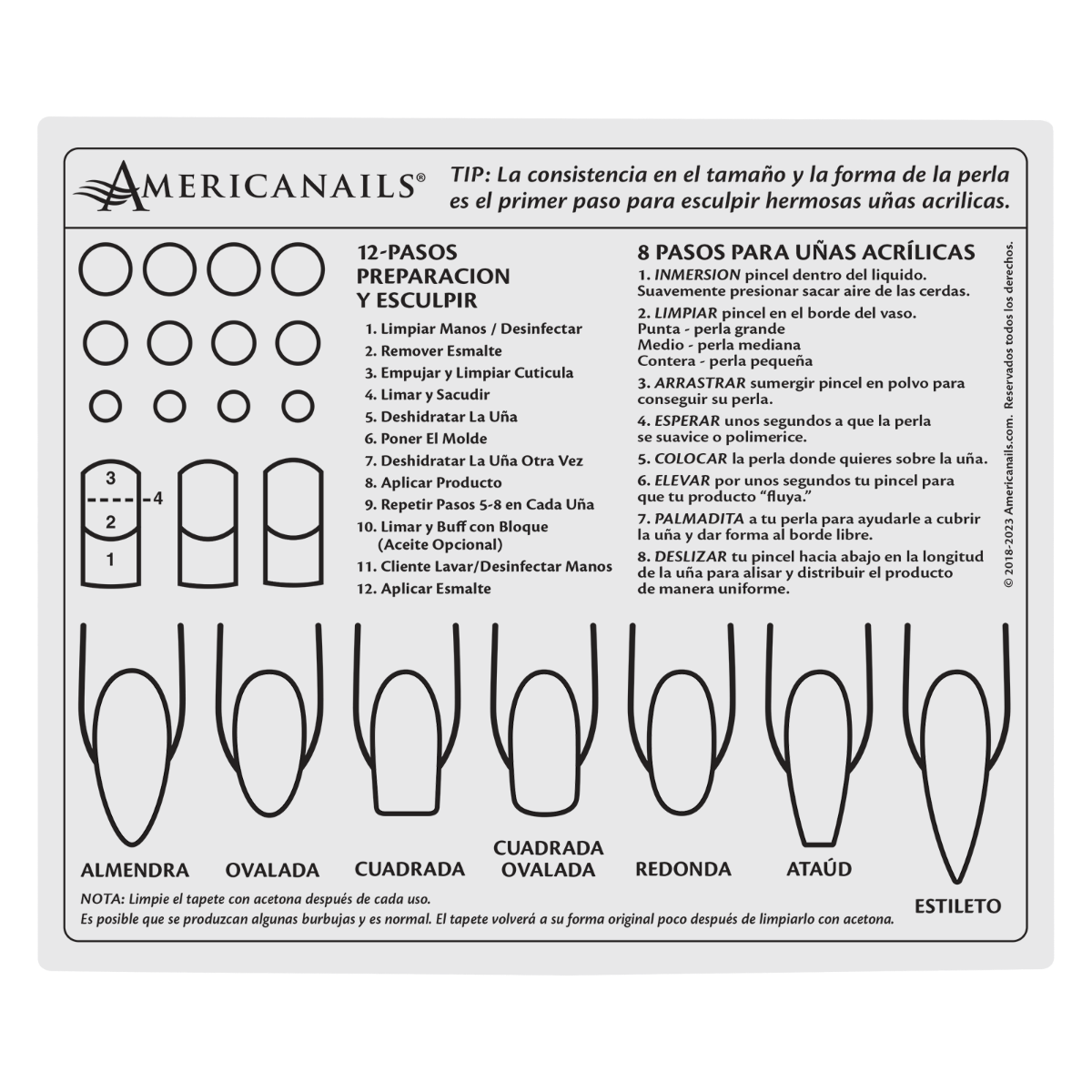 Mini Tapete Instructivo en Silicona Para Técnicas de Uñas Acrílicas