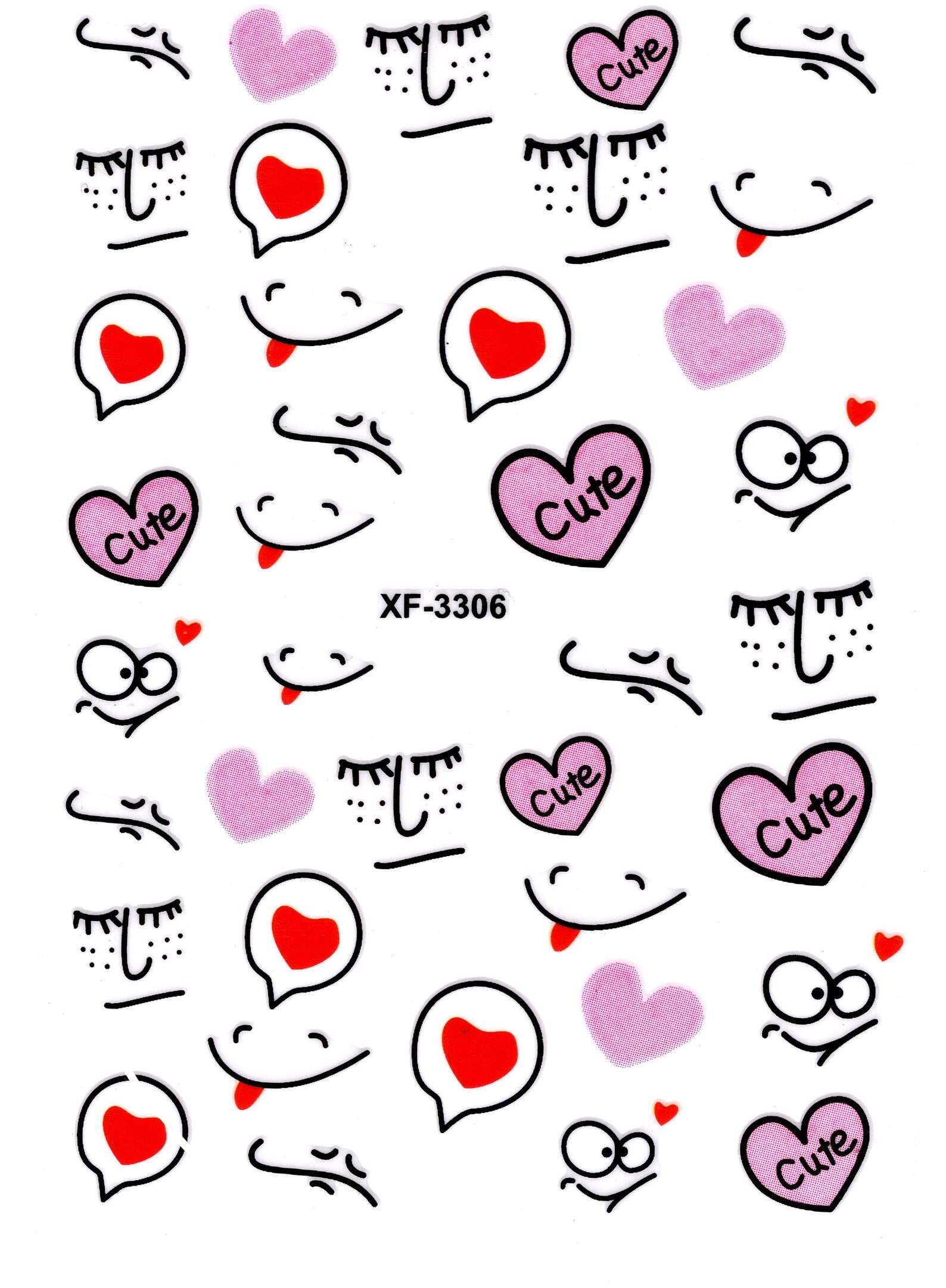 Nail Art 3D Decal Stickers funny cute facial contour smile pink heart (Z-D5732)