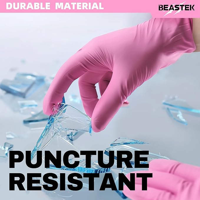 Powder-Free Nitrile Exam Gloves, 4.5 Mil, 100 Count, Pink, Food-Safe Disposable Gloves for Medical, Cooking, Cleaning (Small)