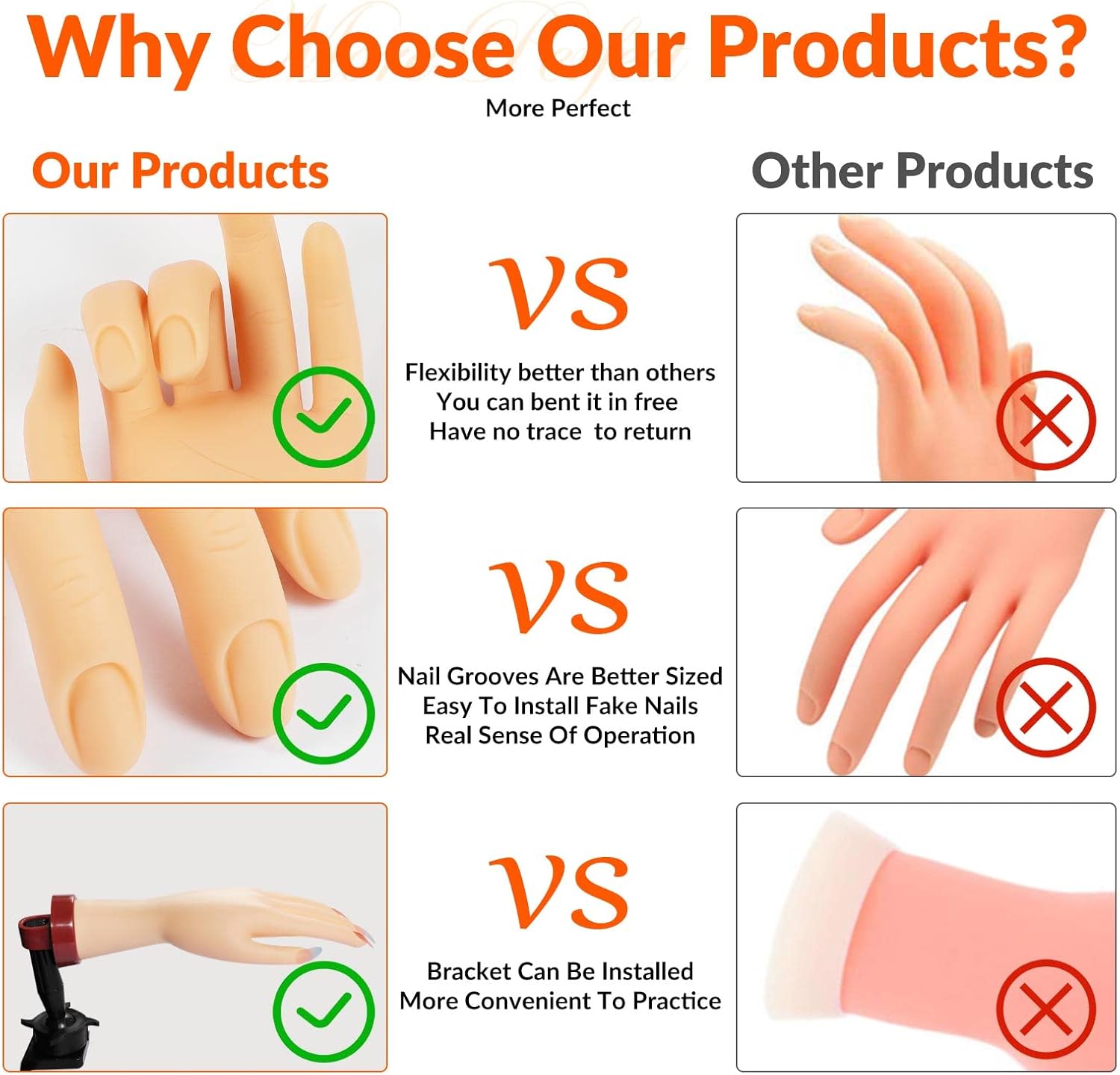 Practice Hand for Acrylic Nails, Flexible Silic Nail Maniquin Hand, A Circular Hole Is Designed at The Bottom of The Hand for Fixation Bracket Hand with Bracket