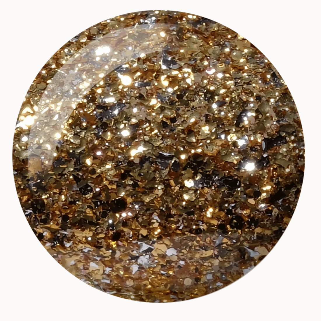 Ready For The Ball #028 (cool gold) — This warm champagne gold with fine gold glitter is a tale as old as time, meant to sweep you off your feet