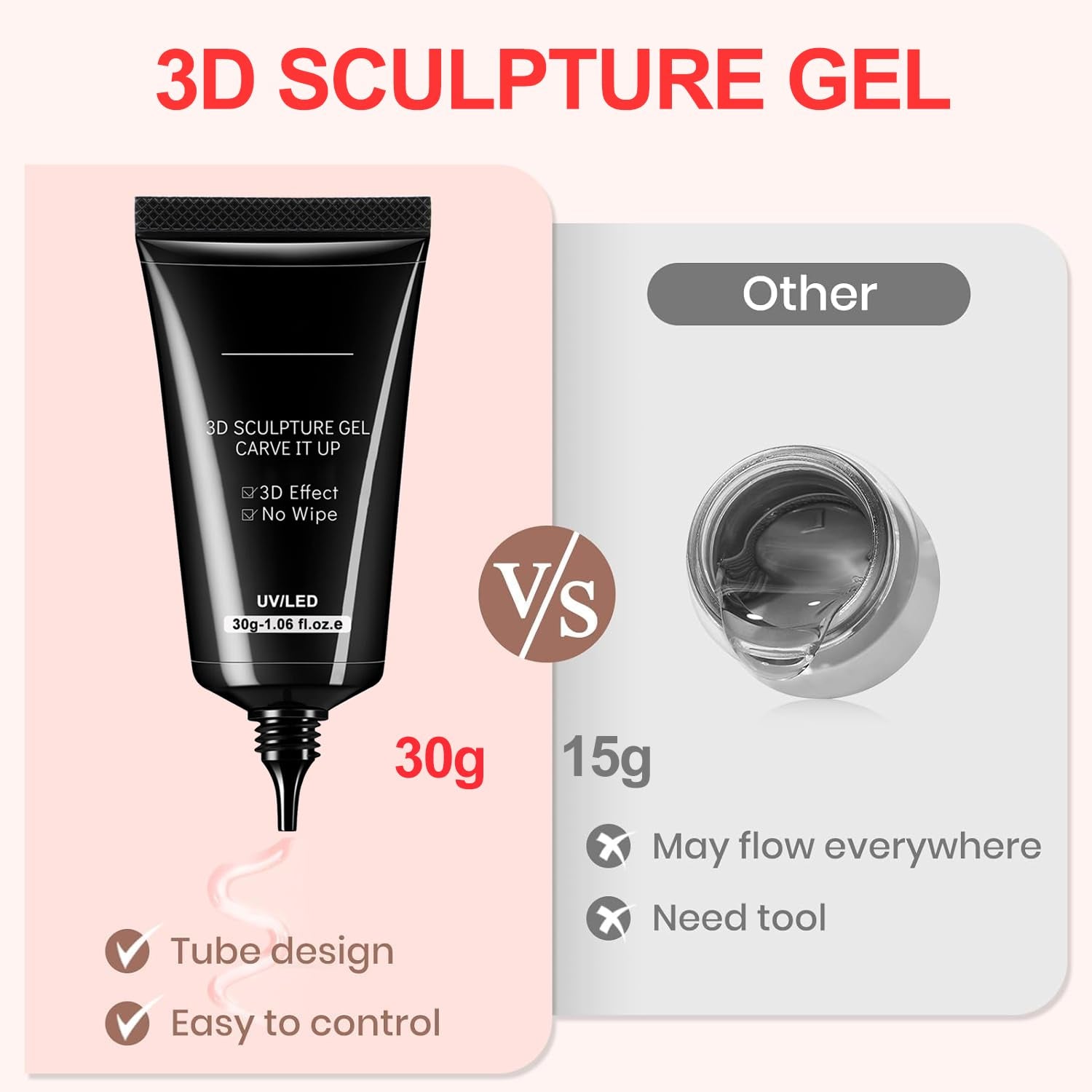 Sculpting Gel 3D Gel Nail Art 3 in 1 Non Wipe Sculpting Gel Nail Glue 30g Clear Sculpting Gel for Nail Art Hand Modeling Gel Building Gel Carving Nail Extension Sculpture Diamond Jewelry Decoration