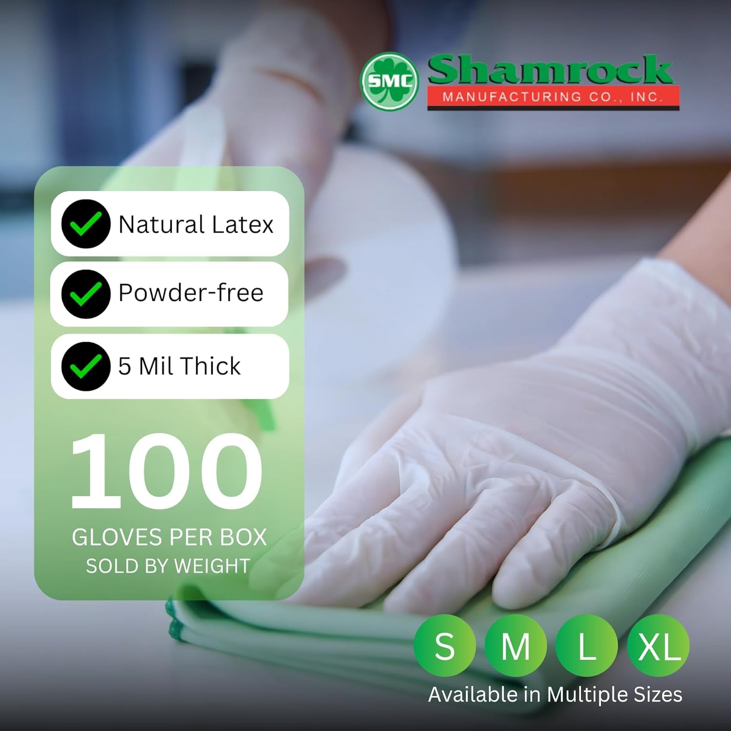 Shamrock 10111 Latex Exam Gloves, Small, 5 Mil, Powder-Free, Full Textured, Disposable, Medical