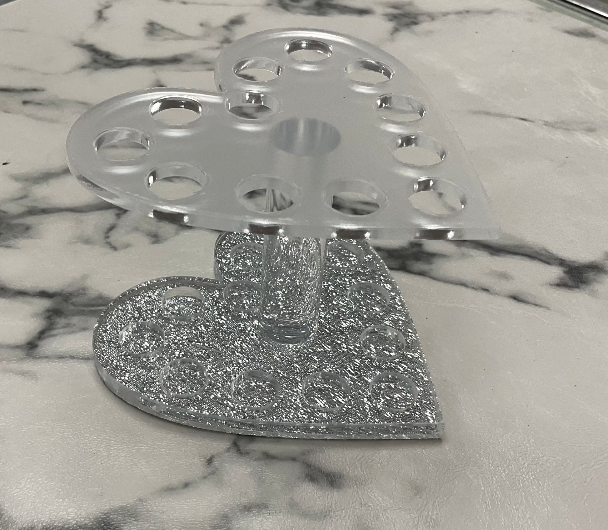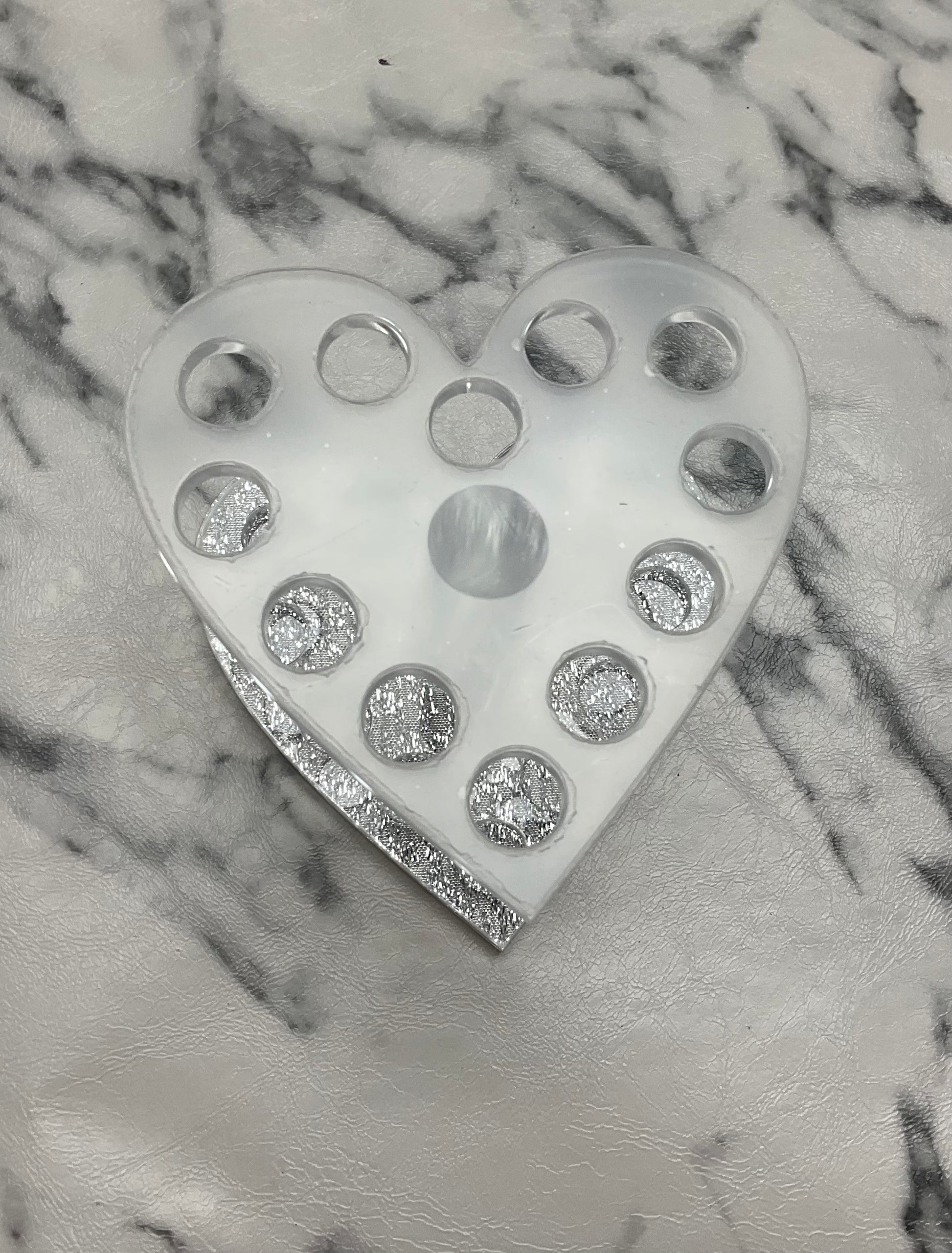 Nail Brush 12 Holes Nail Brush Holder Heart Shape (Silver)