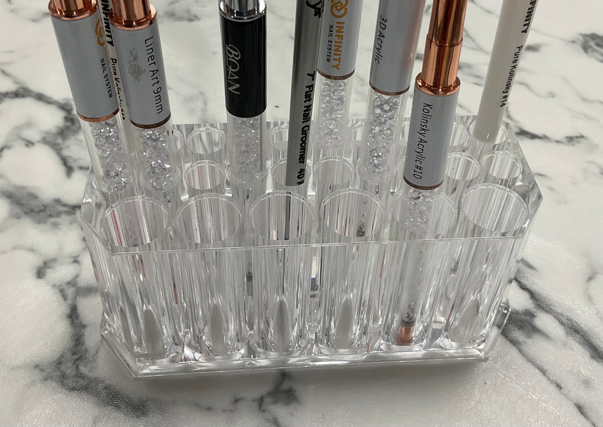 Nail Brush Holder 26 Holes Clear Makeup Brush Organizer Multi Size Slots Plastic Cosmetic Brush Display