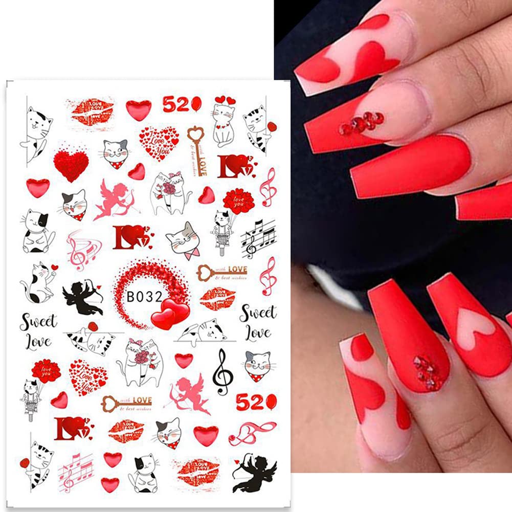 Valentine's Day Heart Nail Art Stickers Decal Designer Nail Stickers Red Lips Love Rose Heart Kiss Angel Foil Decals Nail Art Supplies Valentine Nail Art Designs Romantic (B-032)