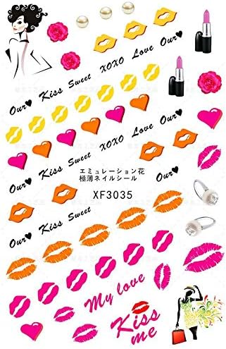 Valentine's Day Nail Art Sticker Decals Water Transfer Nail Decals for Nails Supply Accessories Sexy Lips Heart Love Letter Design for Women Spouse Lovers Nail Salon DIY Decoration(Z-D5739)