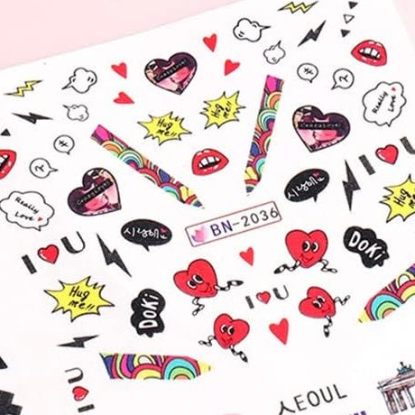 Valentine's Day Nail Decals,Valentines Nail Art Stickers Water Transfer Nail Art Valentine Decor Nails Decorations(Z-D5474)