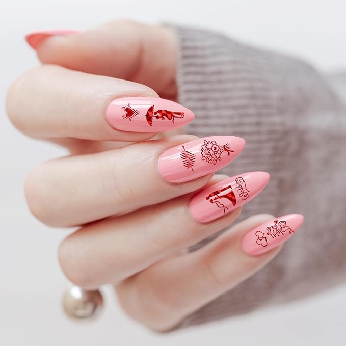 Valentine's Day Nail Stickers - Red Wedding or Valentine Nail Art Decals Love Heart Kiss Rose Lipstick Red Lips Self (Z-D5148)